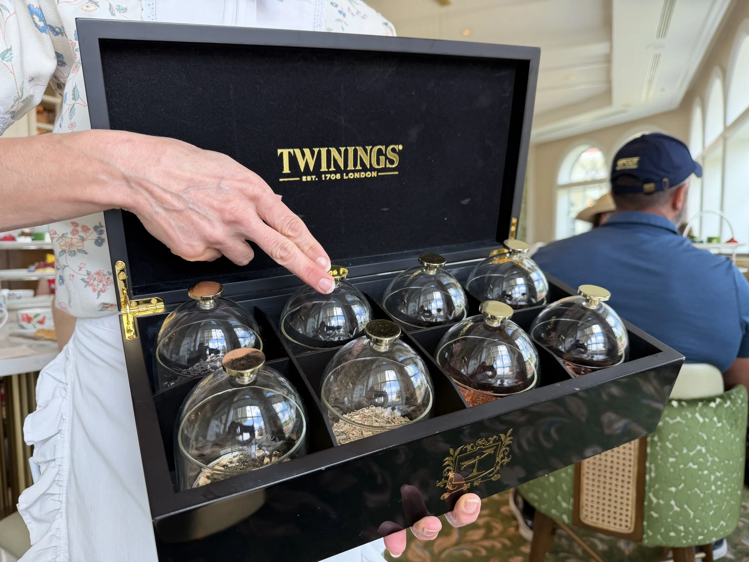 No afternoon tea is complete without tea. Our server Michelle brought us a box of loose leaf teas and went through each of the tea options with us. We were able to smell the various teas and decide which ones we wanted. The good news is that you can enjoy multiple pots of tea and different tea flavors. So, if one flavor isn’t your thing, you can choose a different flavor (or flavors!) with no worries. The Garden View Lounge currently features Twinings tea brand.