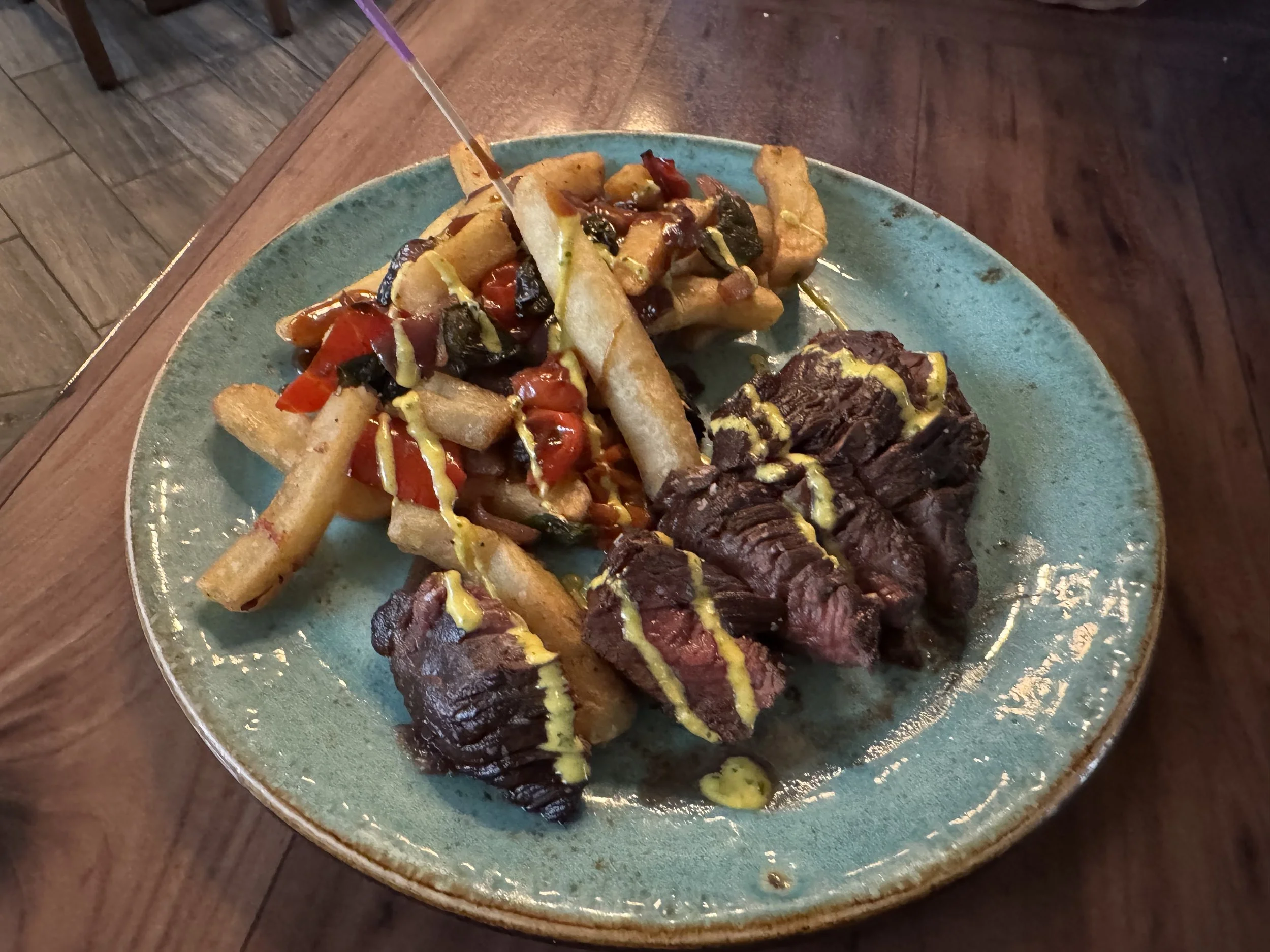 Brandon really liked this. He’s not a huge fan of hangar steak but said it was very flavorful, and he also, of course, loved the fries. Skipper Canteen has switched up the steak entree a lot over the years, and Brandon did enjoy this version.