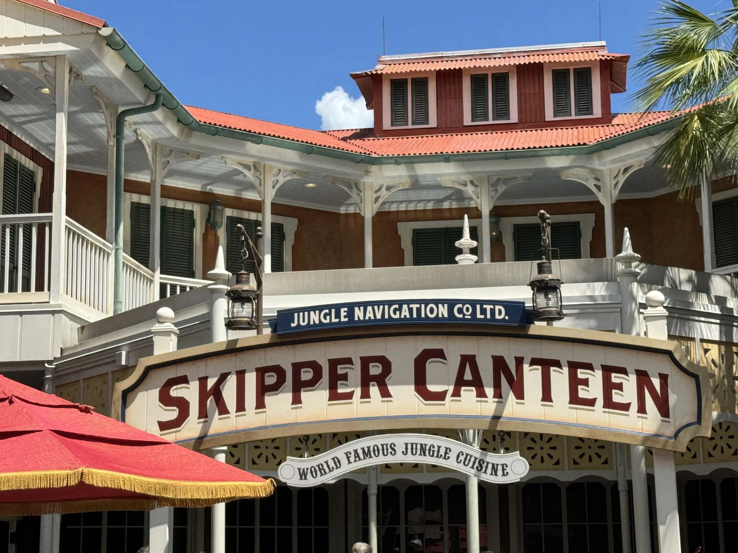 Skipper Canteen, located in the Magic Kingdom, is a table service restaurant that serves up global fare and all the corny jokes you could want, inspired by the classic attraction The Jungle Cruise. Nestled near the attraction in Adventureland, this restaurant quickly became one of our favorite dining spots in the park when it opened in 2015. On this visit, we stopped by for dinner after a day of exploring the Magic Kingdom and visiting the newly opened The Beak & Barrel.