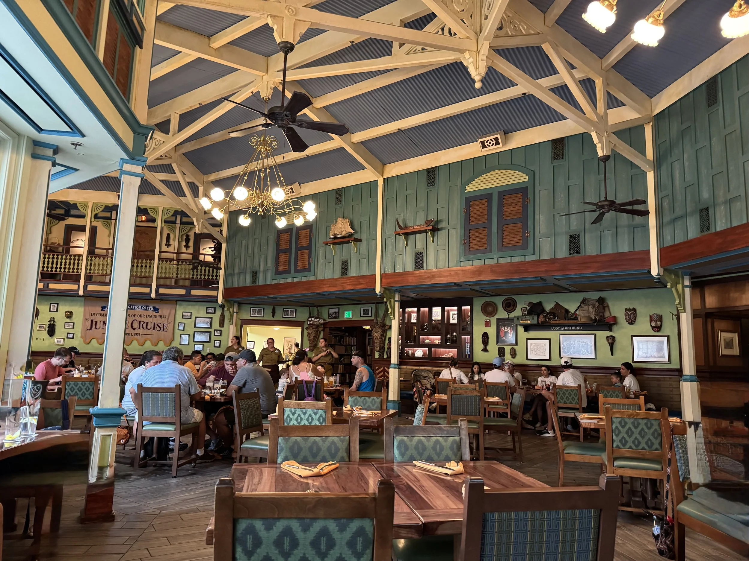From the exterior to the interior of this restaurant, the retro and Jungle Cruise theme is everywhere. We especially love the entrance which really sets the tone for where you are about to dine.