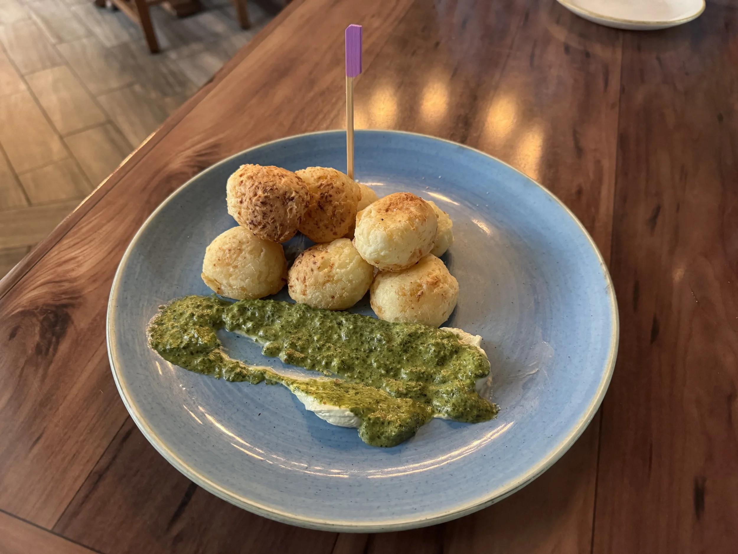 If you love a good Brazilian cheese bread, then this is a must order for you. The portion size is large and perfect for sharing. The chimichurri and cream cheese dip on the side adds a nice zip to the bread too, but it’s great on its own. This is a high recommend from us.