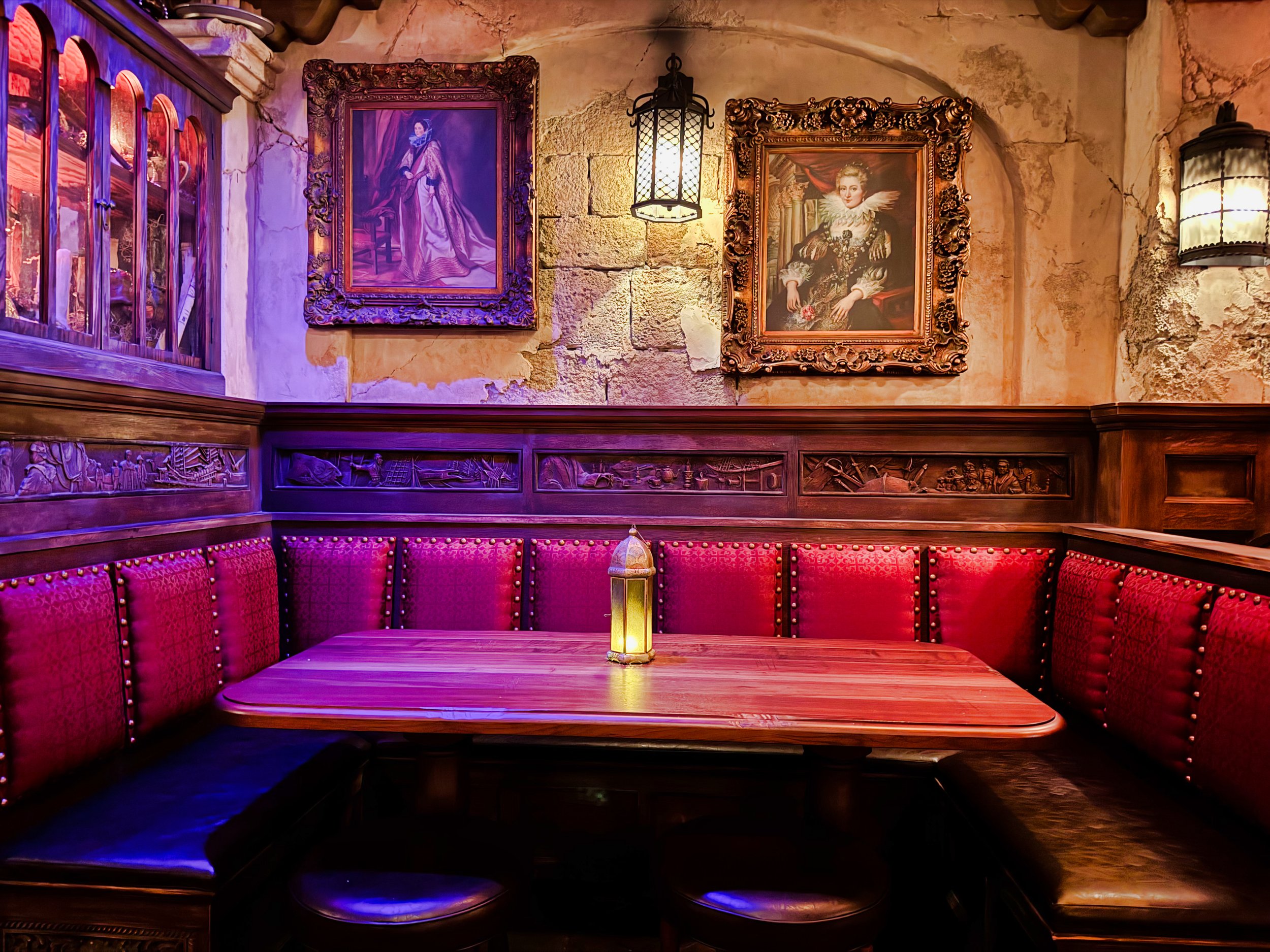 There were also large booths for bigger parties and a variety of other table settings in the Captain’s Quarters. The Mess and Cursed Bar area was more standing and large shared tables.