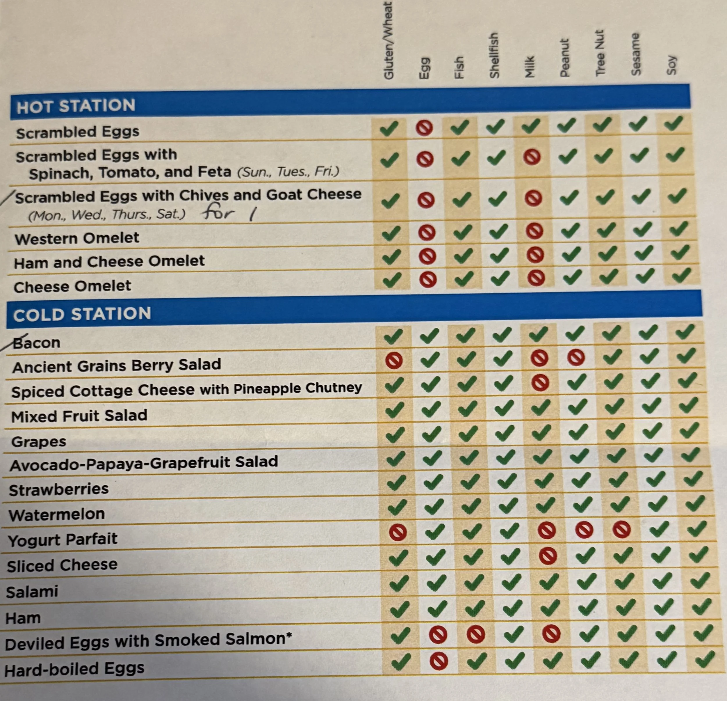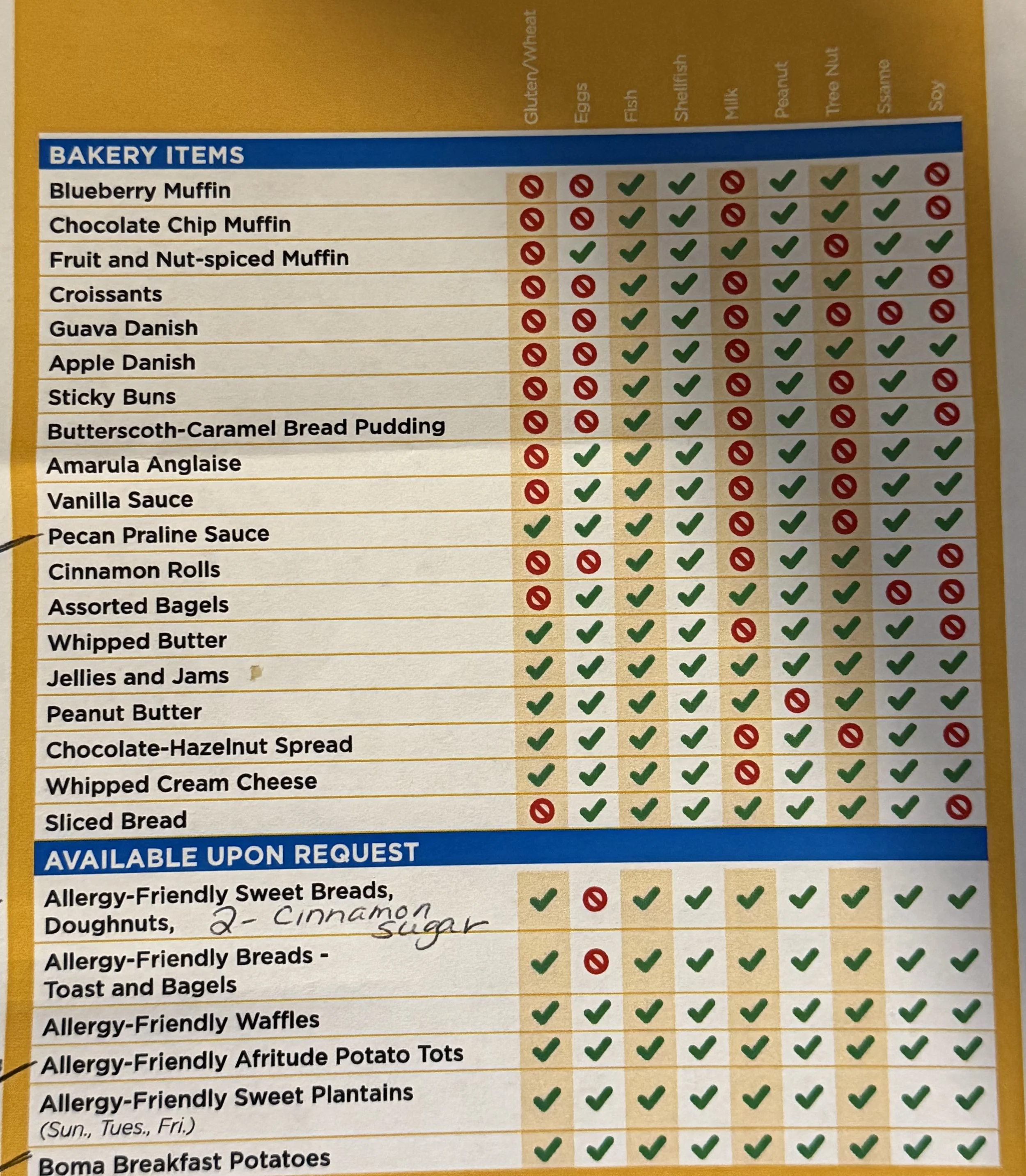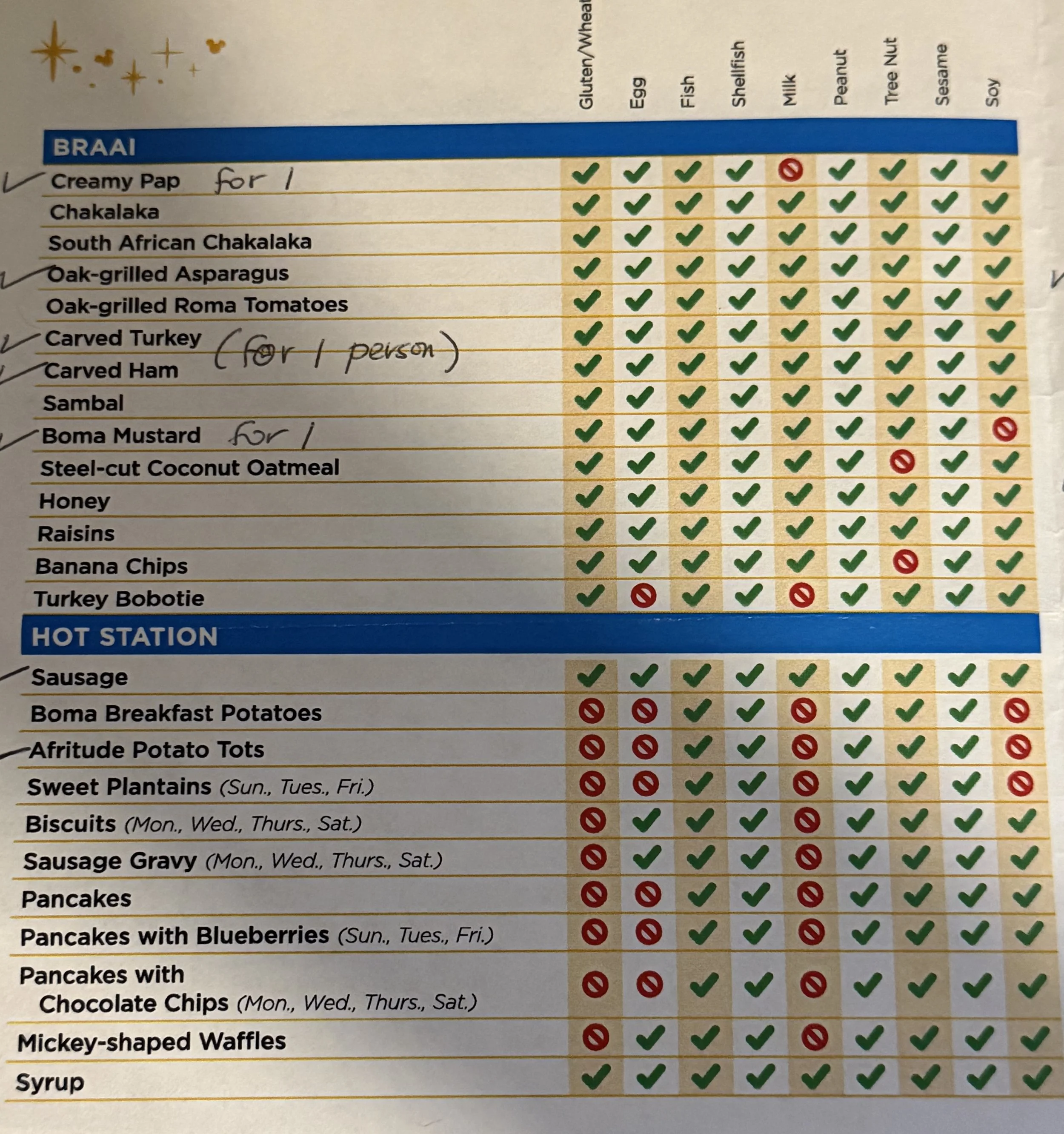 Boma Breakfast Allergen Guide / Photo Taken by Gluten Free & Dairy Free at WDW